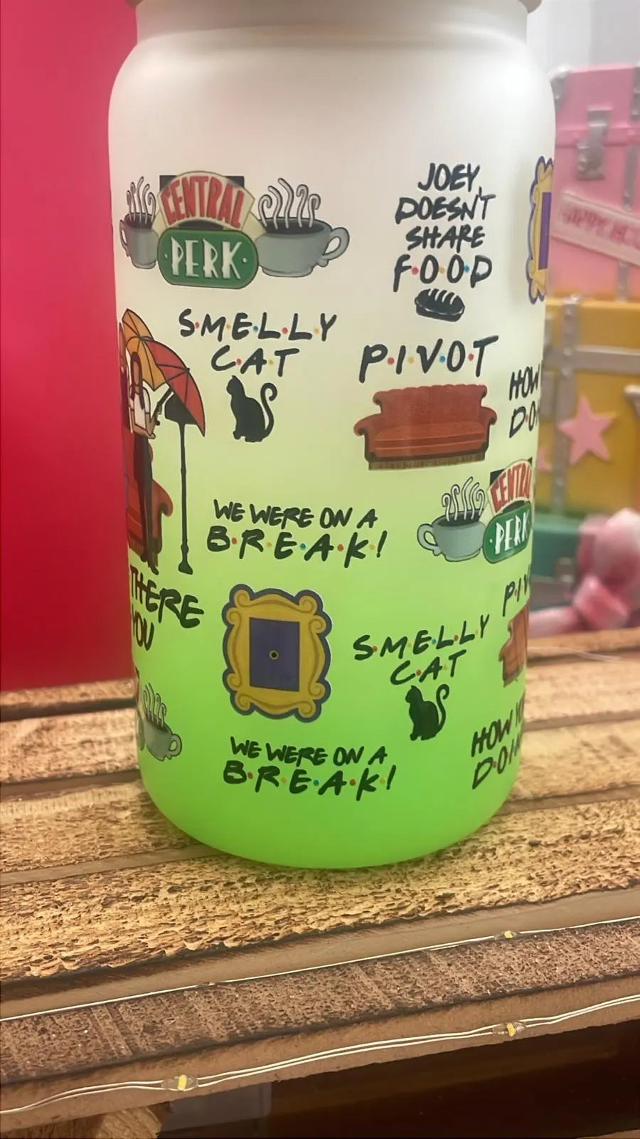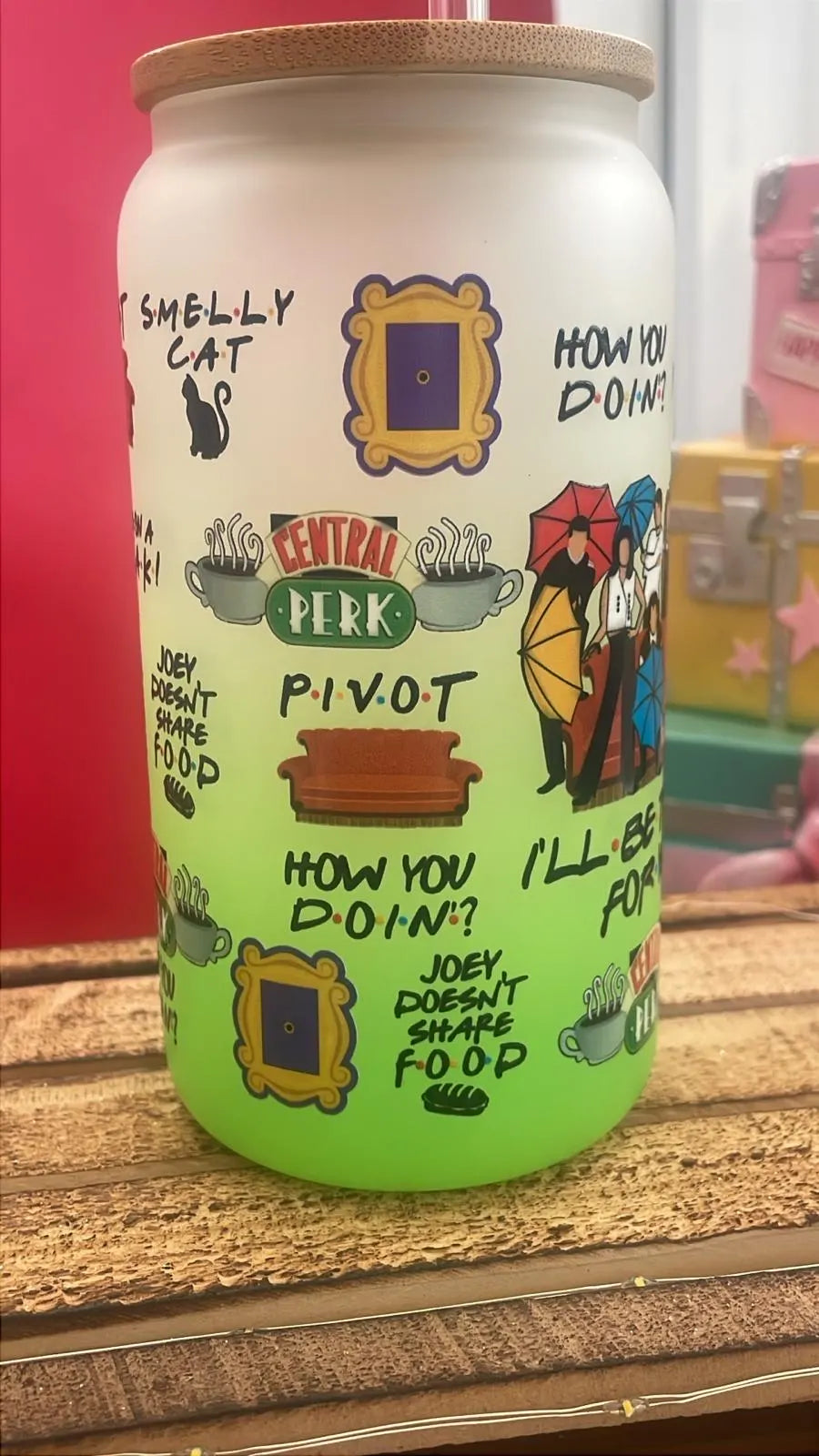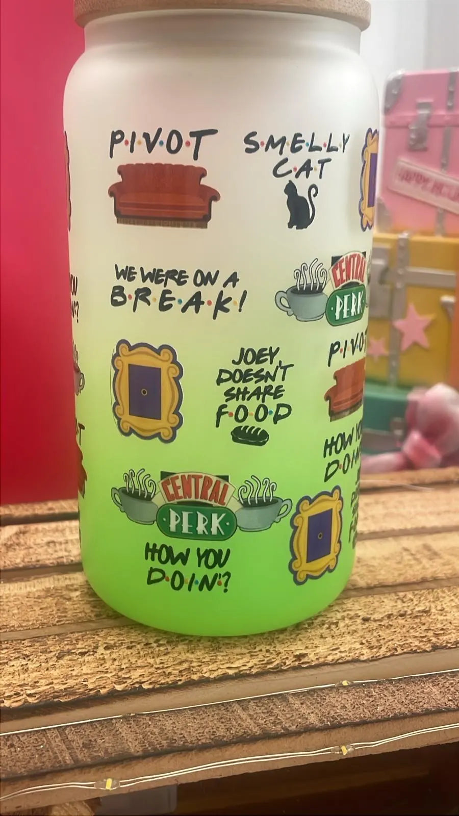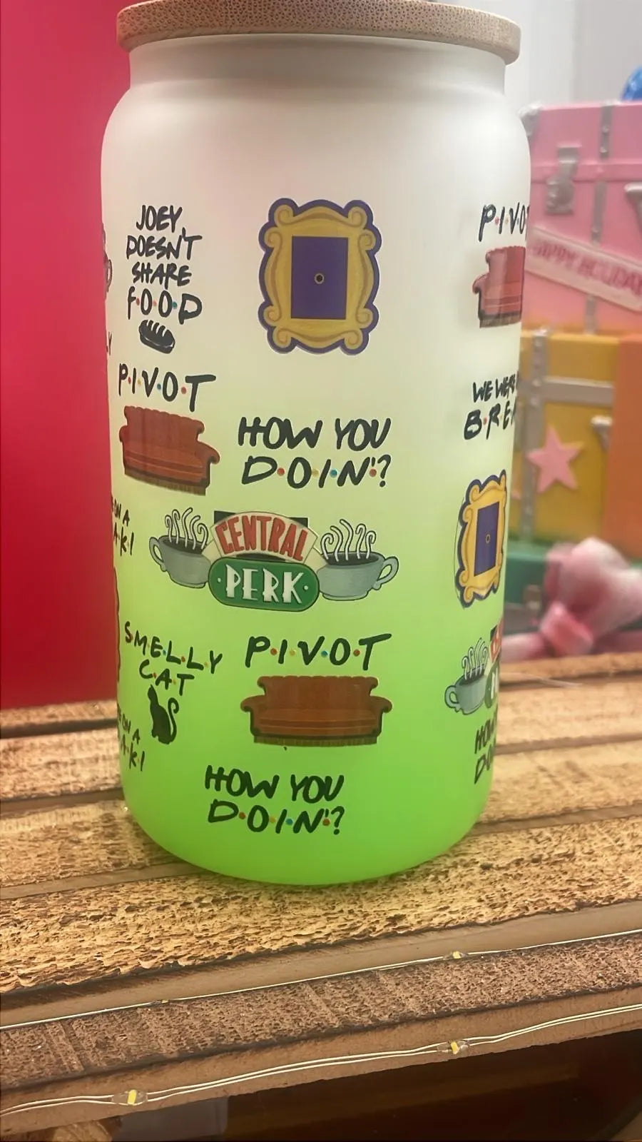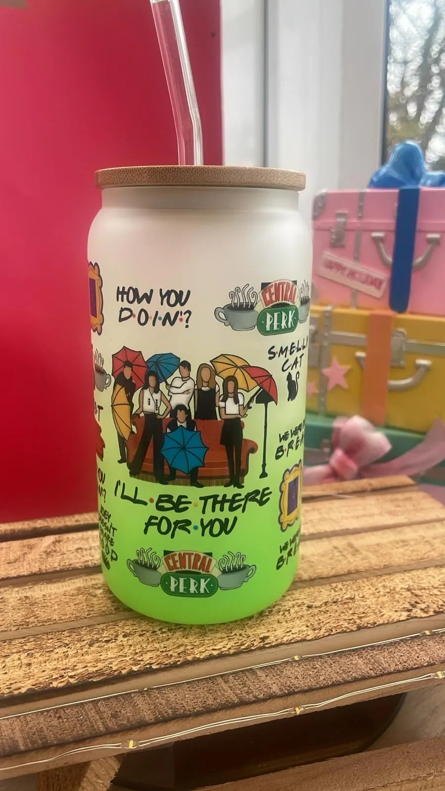 We’ll be there for you - serving you our Friends Centrel Perk printed glass tumbler, with all of your favourite friends quotes.